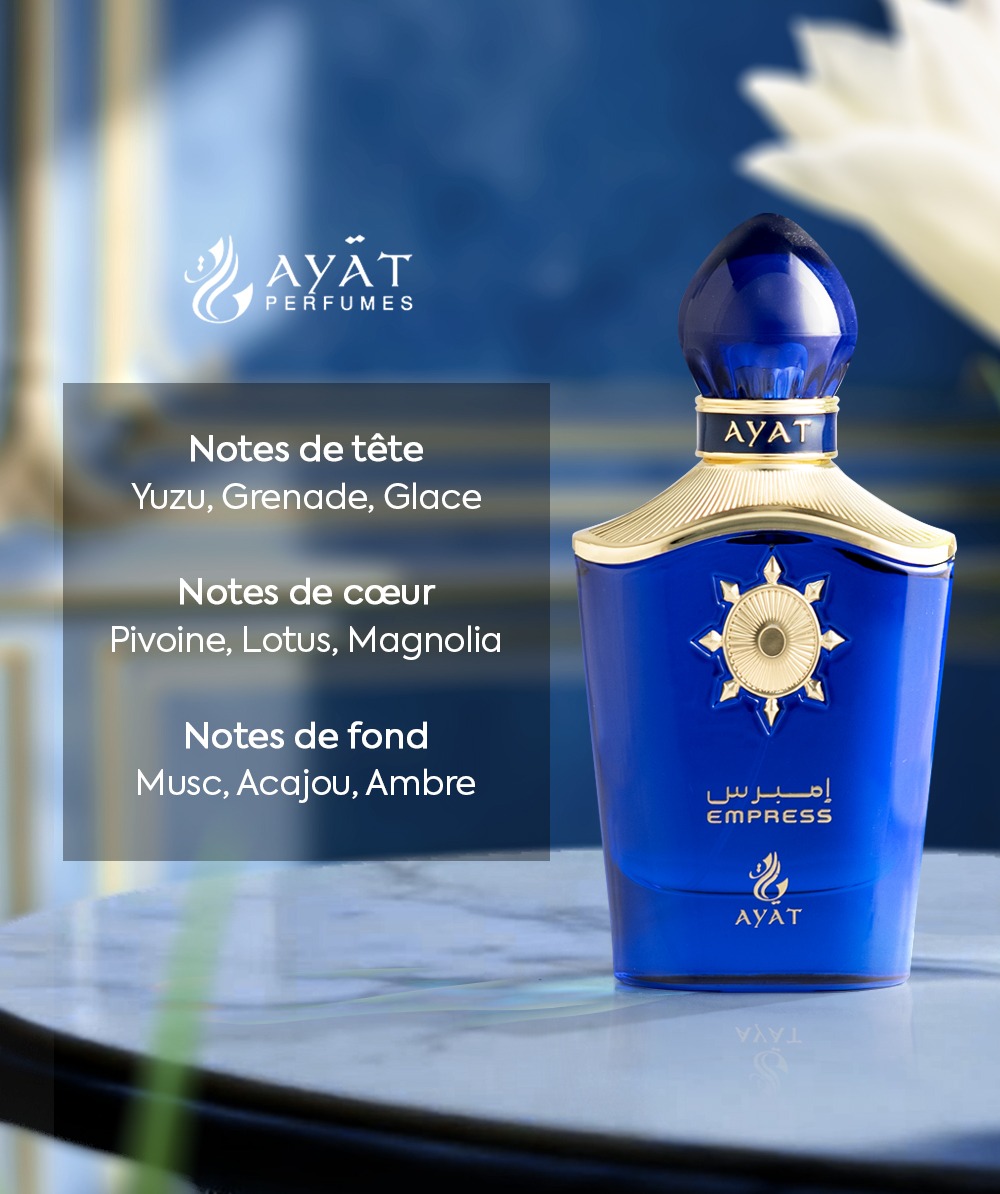 Ayat Perfumes “Empress” is an enchanting fragrance for women and men, ideal for those looking for the perfect balance between freshness, coniferous greenery and floral elegance. This unique composition combines fruity, floral and woody resin notes, providing a soft and refined olfactory experience…