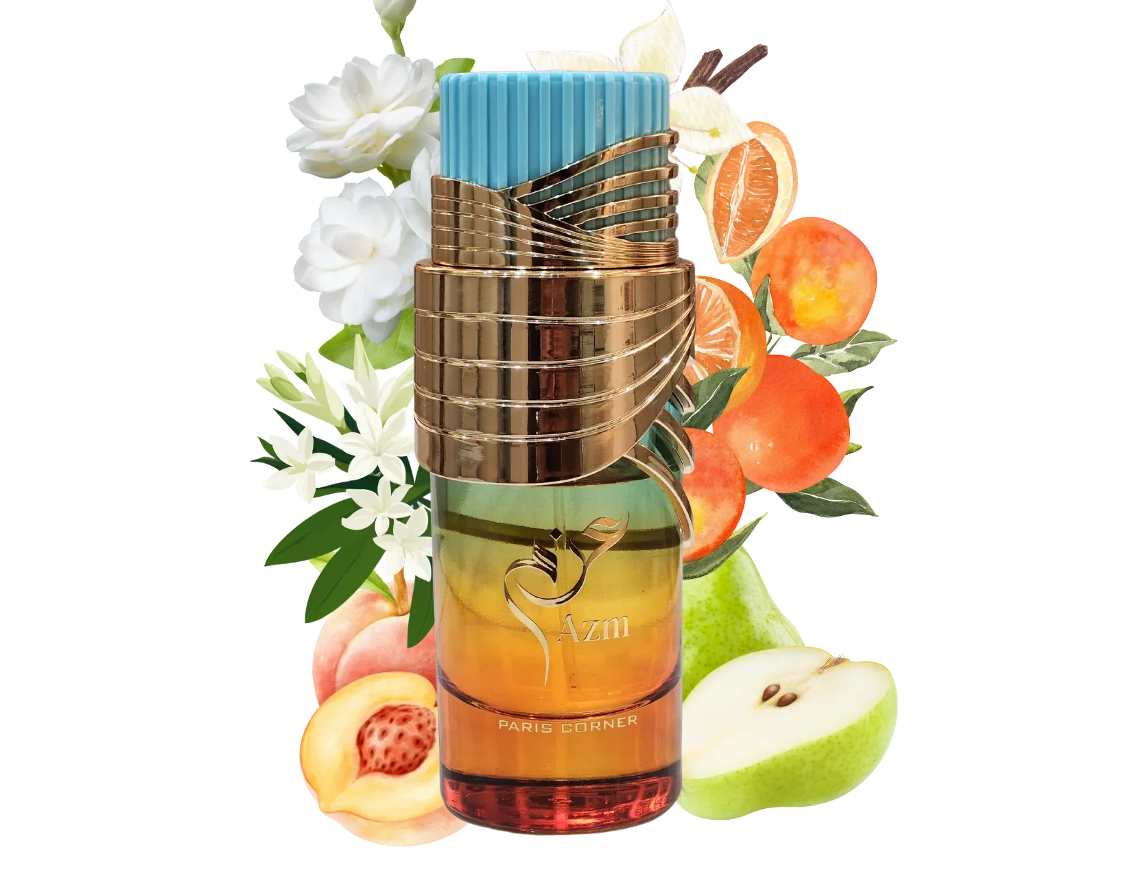 “AZM” Eau de Parfum is a power in every note… From the first intoxicating breath to the long-lasting trail, this fragrance radiates confidence and leaves an unforgettable impression. A refreshing combination of pear, peach and mandarin, seasoned with a drop of rum, creates a bold and energetic beginning. In the middle of the aroma, the elegant softness of jasmine and tuberose flowers opens, giving the scent sophistication and sensuality. The aroma is completed by rich vanilla, warm sandalwood, vetiver and the power of musk, forming an intense, sensual and long-lasting trail. AZM is a dynamic, modern and dangerously captivating fragrance that captures the enchanting moment, leaving a lasting trail of power.