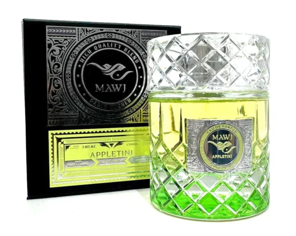 MAWJ APPLETINI kvepalai astsiskleidžia uoslės patirtimi, kupina staigmenų ir uoslės kontrastų, kurie atskleidžia savo istoriją nuo pat pirmųjų natų. Aštrus kardamonas pažadina stimuliuojančiu aromatu, o sultinga bergamotė suteikia gaivų citrusinių vaisių gaivumą. Kai kvepalai nusėda ant odos, jų širdis atskleidžia tikrąją magiją. Sultingas ir egzotiškas obuolys puikiai dera su šiltomis ir šiek tiek karamelizuotomis romo ir brendžio natomis, sukurdamas gardaus kokteilio, užpilto ant ledo pojūtį. Egzotiškas ananasas suteikia nuostabų tropinį pojūtį, o šilta vanilė suteikia patirčiai gardaus saldumo. Muskuso prieskoniai užbaigia kvapo širdį, suteikdami jam paslaptingą ir šiek tiek žemišką natą. Galiausiai „Mawj Appletini“ kvepalai atskleidžia savo modernų eleganciją. Šiltas ir jausmingas ambroksanas suteikia kreminę tekstūrą, o brangus kedras – rafinuotą medienos natą. Šis unikalus derinys puikiai subalansuoja gardų širdies saldumą, sukurdamas sudėtingą ir nepamirštamą aromatą. Tai unikalus citrusinių vaisių gaivumo, sultingų vaisių, šiltų romo ir brendžio natų bei modernaus medienos pagrindo aromatas tiems, kas siekia būti energingi ir jausmingi bei visada nori būti dėmesio centre.