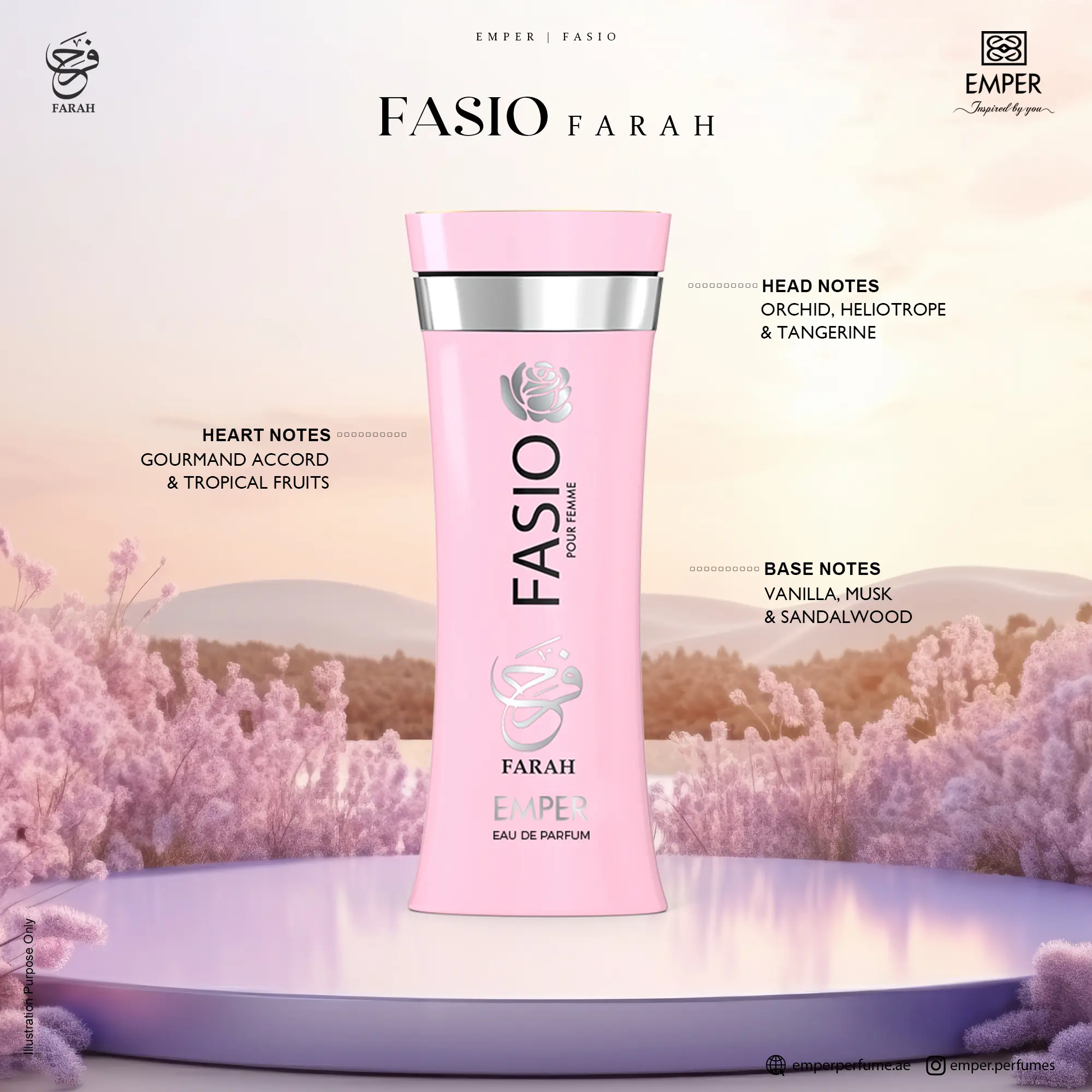 Парфюм Fasio Farah — экзотическое соблазнение для современной женщины… Это исключительно чарующий аромат, уникальное сочетание белых цветов и экзотических элементов. Эта парфюмерная вода открывается нежными нотами орхидей и гелиотропов, слегка сладковатым, спокойным и сливочным ароматом, который пленяет ваши чувства.